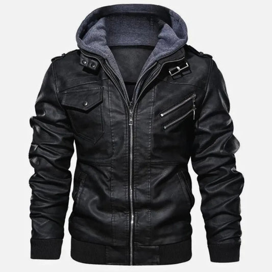 PU Synthetic Leather Hooded Jacket for Men
